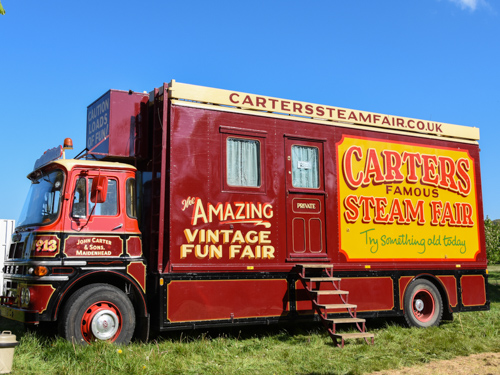 Our fair wouldn’t be complete without the vintage vehicles that we use to transport the rides and to pull the living wagons. Just like our rides, each one has been lovingly restored to its former glory and repainted in our Carters livery.